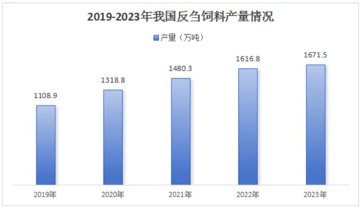 反芻飼料是指適合反芻動(dòng)物食用的飼料。反芻飼料成分與豬飼料成分類似,按營養(yǎng)劃分為蛋白質(zhì)飼料、能量飼料和粗飼料。其中蛋白質(zhì)飼料成分包括棉籽粕、菜籽粕、豆粕、胡麻餅等;能量飼料成分包括玉米、麩皮和甜菜顆粒粕;粗飼料成分包括玉米、秸稈、蓿稻草、大麥秸和豆秸等。根據(jù)主要成分及功能不同,反芻動(dòng)物飼料可分為反芻動(dòng)物預(yù)混料、反芻動(dòng)物濃縮料和反芻動(dòng)物配合料。一、飼料市場發(fā)展情況近年隨著全國城鄉(xiāng)居民收入增加、居民生活